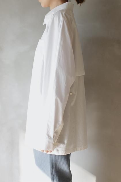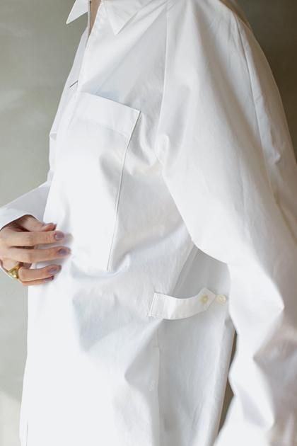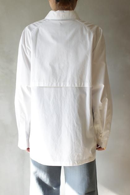 コットン素材のジップブルゾン。脇のボタンでシルエットの調節が可能。羽織りとしてだけではなく、トップスのようにラフに着用いただけます。
