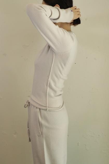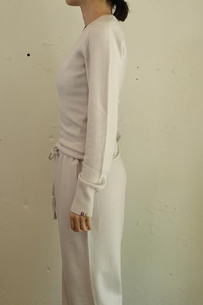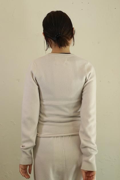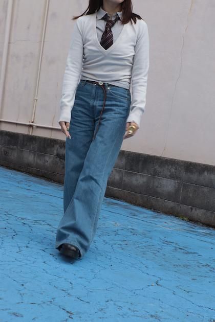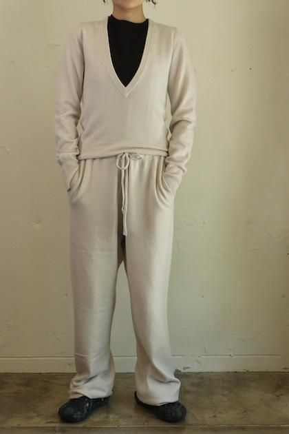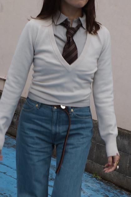 ジャストサイズで深いVネックニットは女性的な一着です。