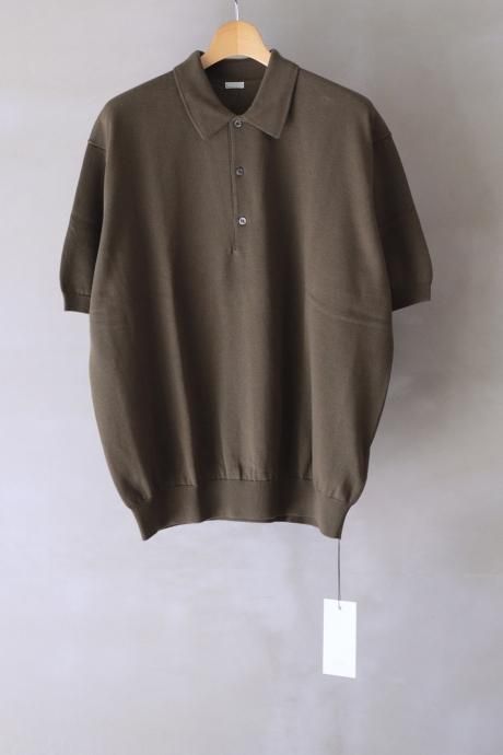 デザインはポロカラーのショートスリーブ。 英国のクラシックハイゲージニットポロと、スポーツポロの良さを両立したポロシャツ。 やや小ぶりの襟バランスと、深めに設定した前明きにより、クラシックになり過ぎず、モダンな印象に 仕上げた。