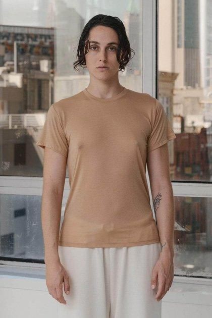 柔らかくさらさらとした肌触りの良いバンブーリヨセル素材を使用したbaserange定番のTeeシャツ。リヨセルは天然の再生セルロースから作られた人工繊維。