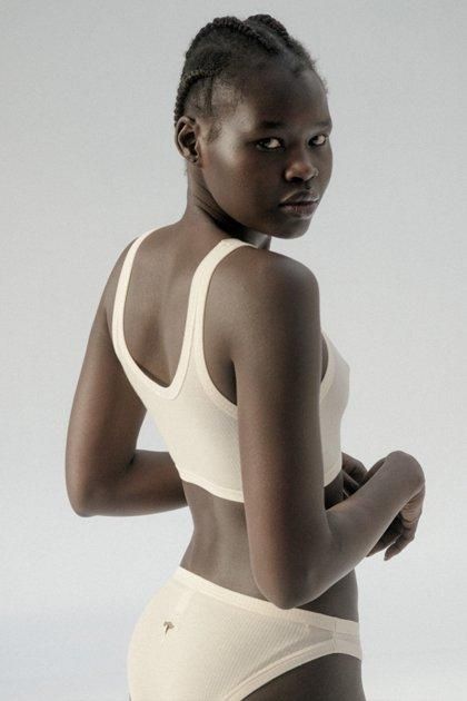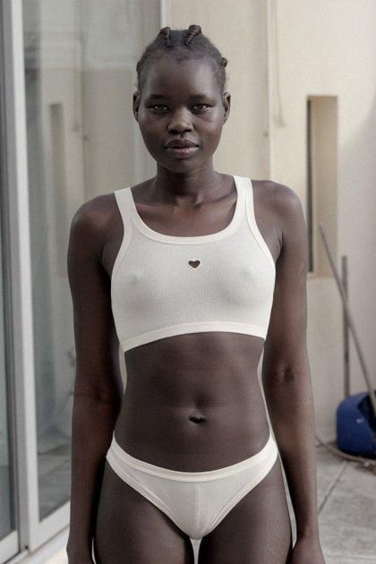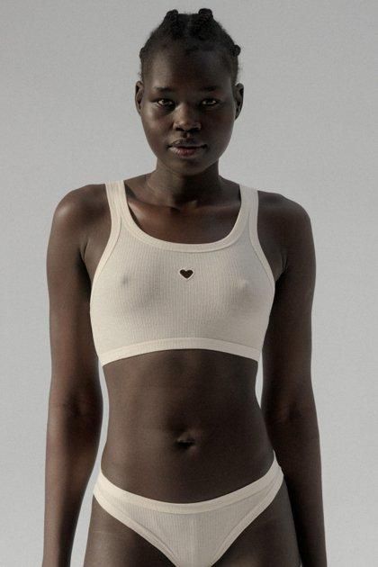 フロントにカットアウトを施したハート型の刺繍、スクープネックです。<BR> モデルはSサイズを着用しています。<BR>