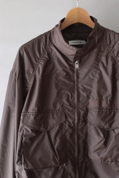 ミリタリージャケットとドリズラーを掛け合わせたようなデザインのショートブルゾンです。襟のスタンドカラーにアップデートし、ゆとりのあるシルエットと大きめのフラップポケットが特徴です。