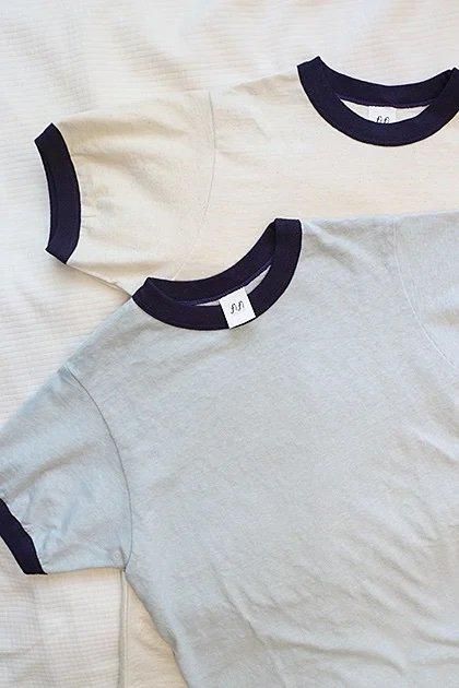 60〜70 年代当時の T シャツは、今のものに比べると、ボディが歪んでいたり、不自然なシワが よっていたりと、完璧ではない仕上がりのものが多数。でも、その「完璧でない感じ」がとにかく可愛く、愛おしい。絶妙なバランスを再現するために、何度も修正を繰り返しました。見た目も、着心地も、まるでヴィンテージ。でもヴィンテージよりもっと心地いい。きっとずっと着たくなる「fifi tee」の誕生です。