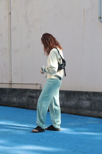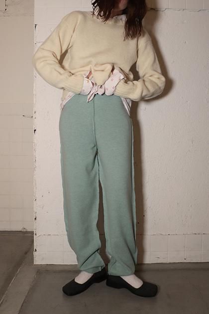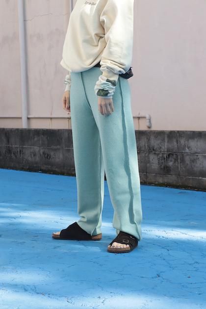 カシミヤ混の柔らかなウール素材。ゆとりあるストレートラインのニットトラウザー。インサイドアウトをイメージした縫製です。