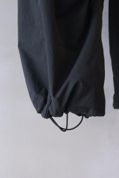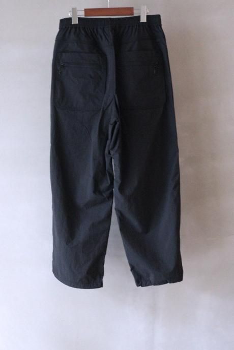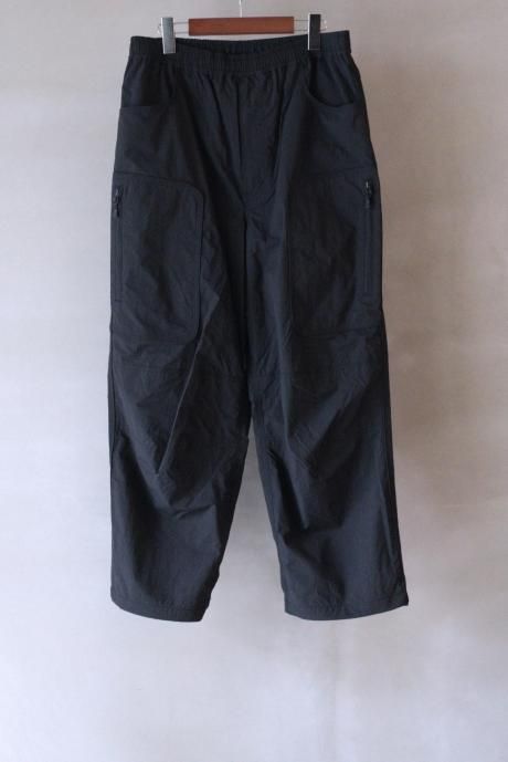2000年代のスキーパンツをデザインソースにDAIWA PIER39流にギミック満載にアレンジ致しました。特徴的なパイピング仕様のサイドポケットは携帯電話などの収納に便利です。素材の特徴に加え、ウエスト、裾にドローコードを配し釣りの際動きやすい仕様にしております。