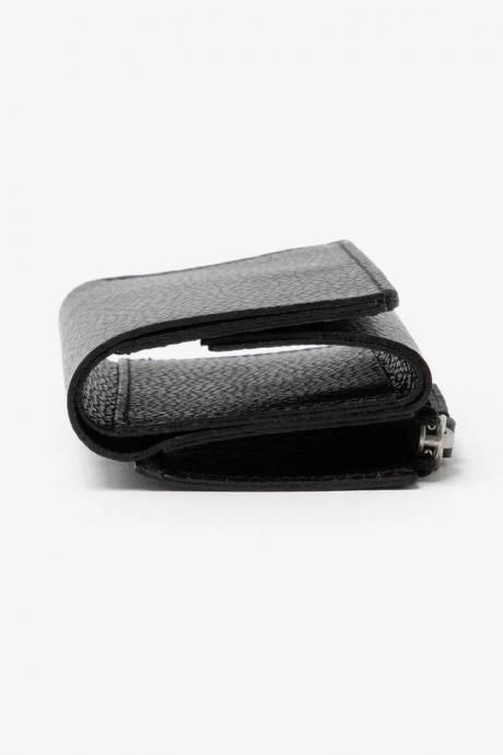 一枚仕立てのレザーで仕上げているシンプルなフラップのついたケースです。小銭はもちろんのこと少量のカードや折りたたんだお札も収納ができます。コバは切り目を活かした仕上げにしています。タンニン鞣しを施した肉厚のレザーは、伸びが小さく弾力性も少ないため型崩れしにくい仕上がりとなっています。色味にランダムな濃淡があり、使い込むほどにツヤや深みが増す味わいのある革です。