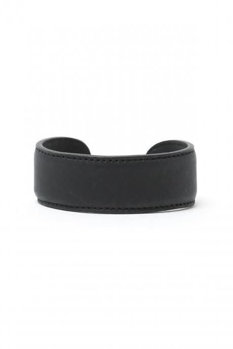 ブラス製のプレートをヴィンテージ加工を施したカウレザーで包んだブレスレットです。ラインナップ2種類のうちのナローモデルになります。牛の傷跡さえも生かしたワックスヴィンテージ加工により、しっとりとした質感の独特な表情に仕上がった、経年変化も楽しんでいただけるレザーです。