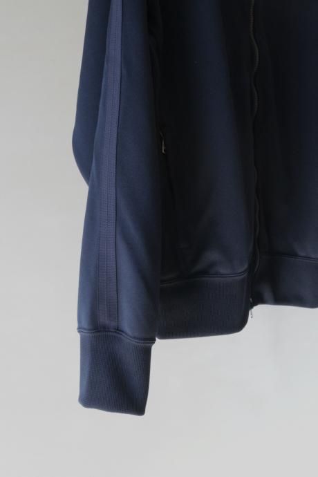 光沢感のあるスポーティーなジャージー素材を使用したジップアップブルゾンです。肩から袖に入る同色のラインもアクセントになっています。