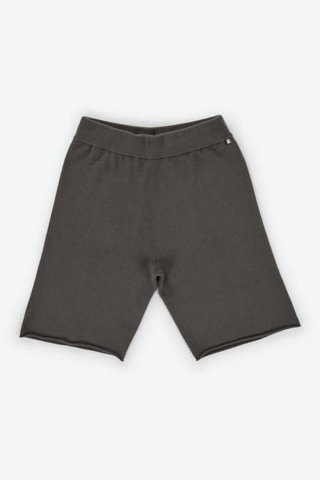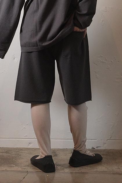カシミヤならではの着心地がとても快適なパンツ。こちらはハーフパンツ。後ろのヒップポケットもポイント。内側に通った紐でウエスト調整可。