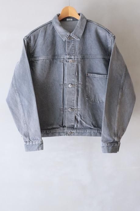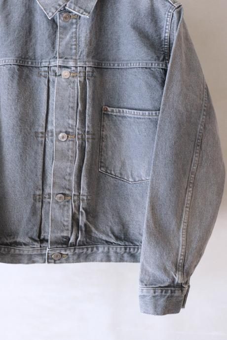 【加工】ブラックデニムがグレーまでフェードしていく過程で、シミや汚れでムラのある絶妙な経年 変化を表現した