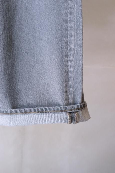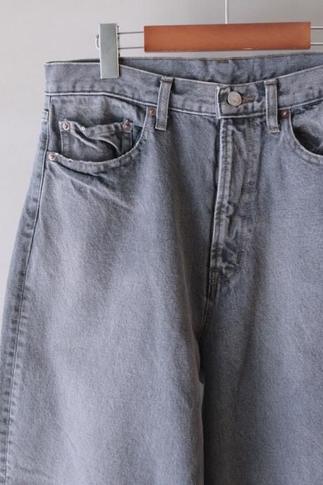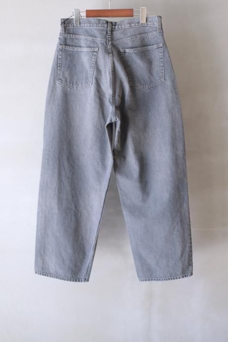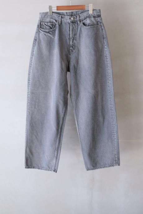 【加工】ブラックデニムがグレーまでフェードしていく過程で、シミや汚れでムラのある絶妙な経年 変化を表現した