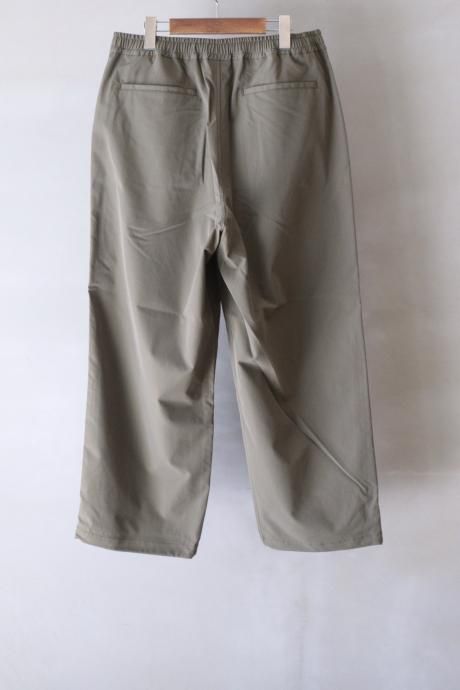 アメリカントラディショナルスタイルの定番であるベーシックなプレーンフロント型トラウザーズをスポーティーに仕上げた。素材の特徴に加え、ウエスト、裾にドローコードを配し動きやすい仕様。
