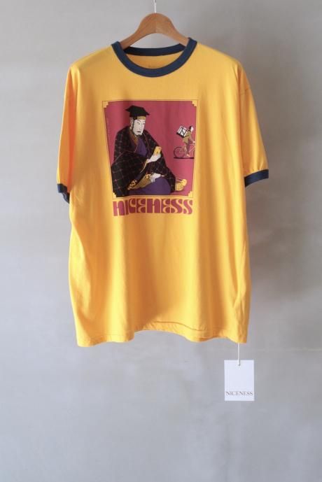 浮世絵をイメージして制作したオリジナルの茶道デザインTシャツ。1980年代のヴィンテージスポーツTシャツをリファレンスとし、日本の精神文化を表す「道」の概念を千利休の哲学になぞらえて表現しています。ボディはベーシックなコットン100%の 天竺、トリムは80年代のムードが漂う配色のバインダー仕様でオリジナルパターンのリンガーTeeです。