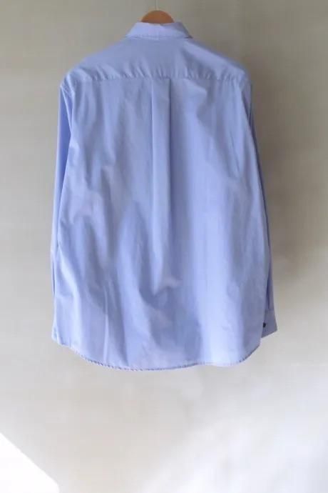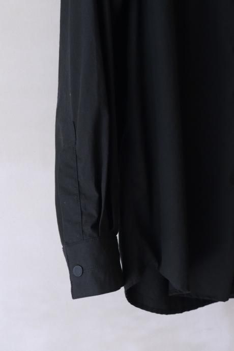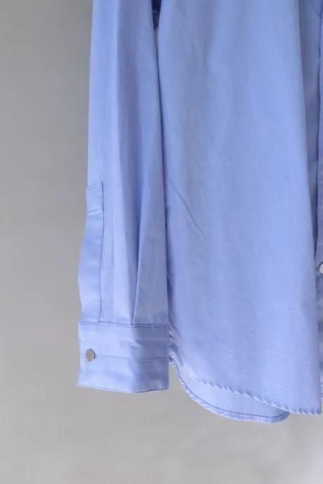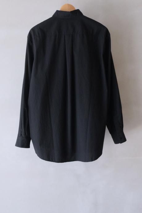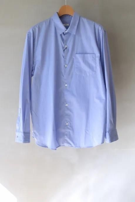 肩幅、身幅共にしっかりとゆとりを持たせており、仕上げに特殊な加工を施す事で、ドレス過ぎる事も無く、ラフ過ぎる事も無いバランスの取れた一枚に仕上げています。日本でも有数のシャツ生地産地である兵庫県播州地区で製作した、経糸、緯糸共に100/2綿の刷毛目。経糸には軽く、細くても強い糸を作る技術を用いており、薄さが求められる春夏シーズンに適した素材に。繊維会社独自の技術により、着用時にできるシワを軽減する特殊加工を用いて非常に滑らかで、柔らかい一枚です。