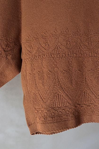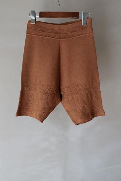 シルクの自然な光沢とカシミアの柔らかさが特徴のストレッチ糸で作るガードル。ヴィクトリアンレースグローブから着想を得た透かし編みをストレッチ糸を使用してアクティブな印象を取り入れたデザイン。