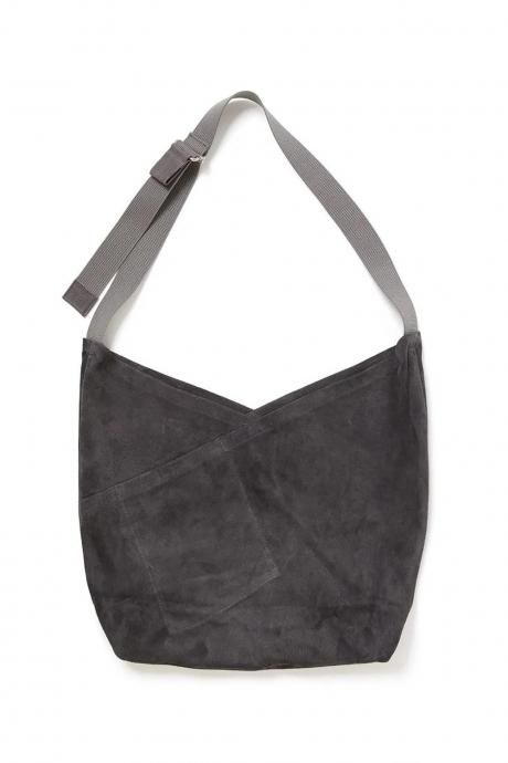 風呂敷や手ぬぐいを縫い合わせ、鞄の代わりとして使われていた「あずま袋」から着想を得たワンショルダーバッグのMサイズになります。独特なフォルムと斜めに配されたポケットが特徴的で、書類やノートなど、A4サイズのものが丁度良く収まります。金属製のバックルを配したストラップはプルを引くだけで容易に調節ができます。正面のポケットはICカードや鍵などの収納が最適なサイズとなっています。豚革は独特の繊維構造により非常に高い耐久性と耐摩耗性に優れており、過酷な条件下でもその性能を維持することが可能です。柔軟かつ軽量であるという特徴も大きなメリットの一つで、重さが負担になることはなく非常に快適です。