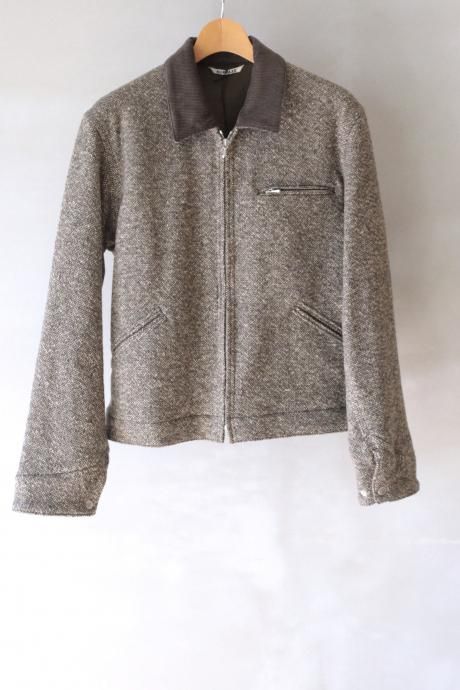 Super120'sの上質な原料を贅沢に使用し、ネップとムラ感を持たせたオリジナルの太番手の糸を作り、ざっくりと織り上げたツイード素材です。極細原料をあえて太番手に紡績することで、粗野で素朴な見た目とは対照的に、柔らかくしっとりとした上質な質感を実現しています。滑らかで温かみのある風合いが特徴のホームスパン風ツイードです。