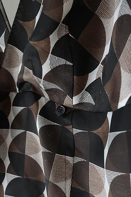 キュプラツイル素材にスクリーンプリント特有の柄の繊細さ、滲み、色の奥行きが特徴的なジオメトリック柄を施した素材で作るカシュクールキャミソール。