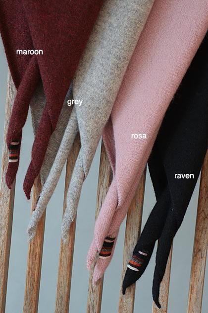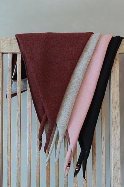 ローリングエッジの三角形のバンダナ。このカシミアスカーフは完璧な万能アクセサリーです。