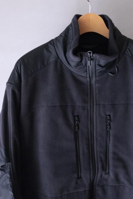 使用用途によってバラエティー豊かなデザインディテールが生まれた2000年代のアウトドアアパレル。当時のシンプルな縦ジッパーのデザインワークを特徴に、負荷のかかる部分に別生地で補強を施したフリースジャケットです。ミリタリーのディテールでもある前振りの袖がデザインアクセント、アクションプリーツを加え、腕の可動域を広げられるように考えたデザインです。
