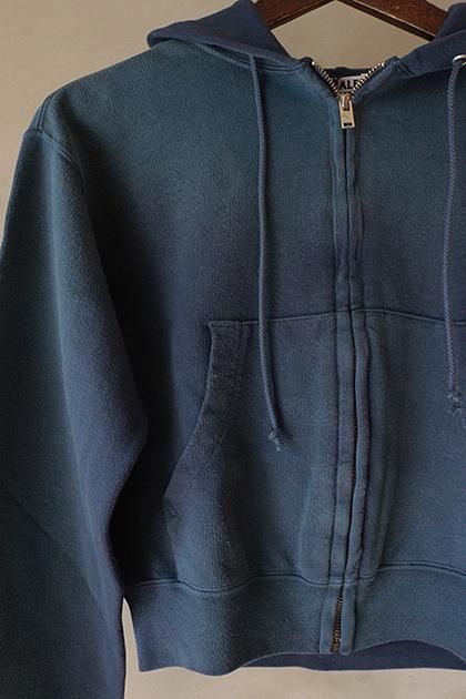 ピマコットンと弾力のある空紡糸を用いて編まれたスウェット素材です。表糸には超長綿のピマコットン、裏糸には弾力のある空紡糸を採用し、高品質な原料とヴィンテージ機械を駆使して仕上げています。独特の薄さと弾力を兼ね備えた、軽やかでありながらも豊かな素材感が特徴です。縫製後には製品染めを施し、まるで長年使い込んだかのような、深みのある色味を表現しています。