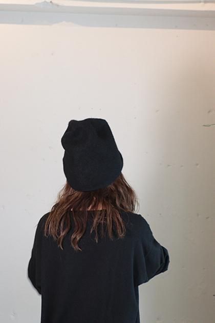 15番手単糸を3本取り、7ゲージでややゆるく編んだニット帽 を、水洗いと強縮加工によりギュッと圧縮した贅沢なカシミ ヤハット。 カシミヤ100%を強縮し、この独特な風合いをつくりあげた 贅沢なアイテムです。ラフにデイリーにスタイリングのポイントと して、着こなしをブラッシュアップ。 適度なハリとフィット感の心地よさは、カシミヤならではのとろ けるような夢心地。カシミヤの上質さを感じられる、秋冬の 装いを格上げするアイテムです。