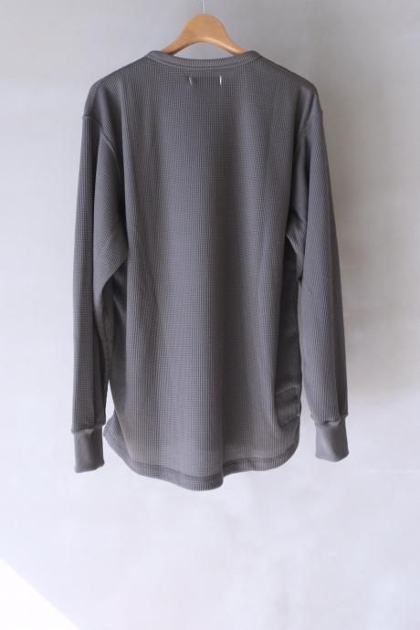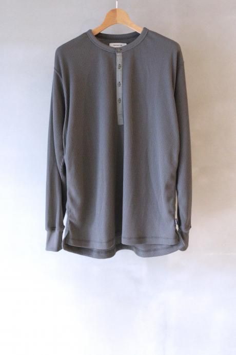 保温性に優れたPOLARTEC® THERMAL PRO®を使用した、ヘンリーネックのロングスリーブカットソーです。クラシックなワッフル編みの質感を持ちながら、軽量で高い保温性と柔らかな着心地が特徴です。