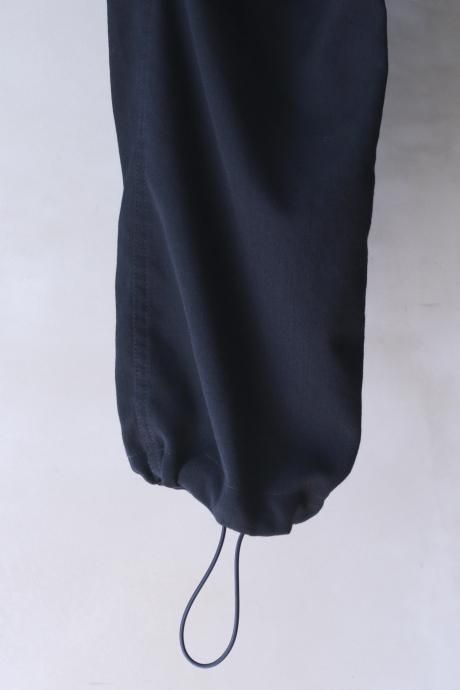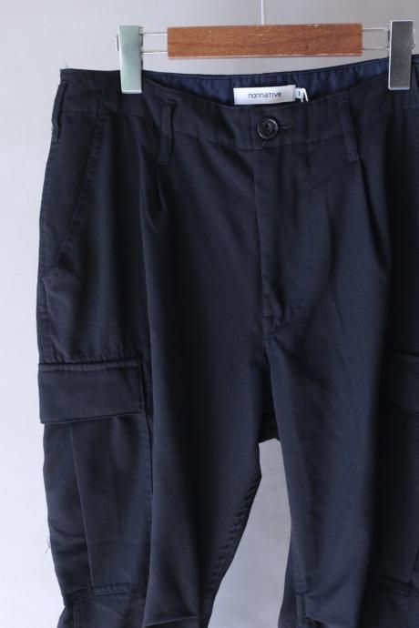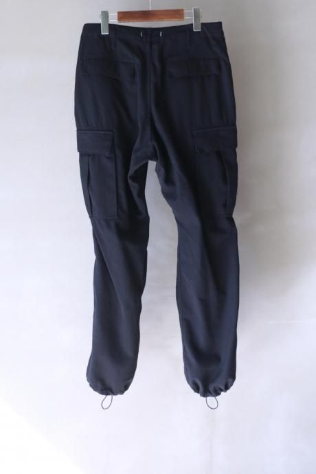 やや光沢があり落ち感が綺麗なウールツイルを使用したトゥルーパー6ポケットトラウザーズです。ウエストとフロント膝部分、カーゴポケットにタックが入っており、立体的なシルエットになっています。