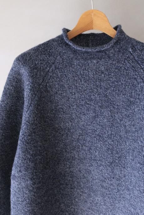 シェットランド糸を使用しローゲージで編み立てたボトルネックのプルオーバーニットです。