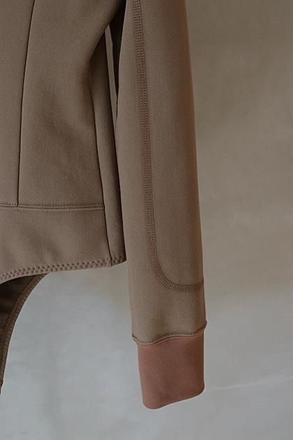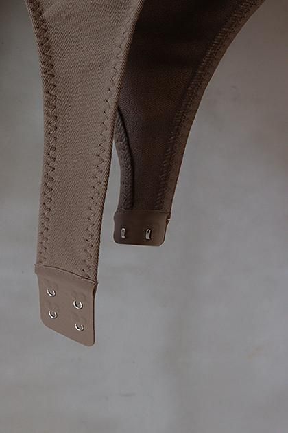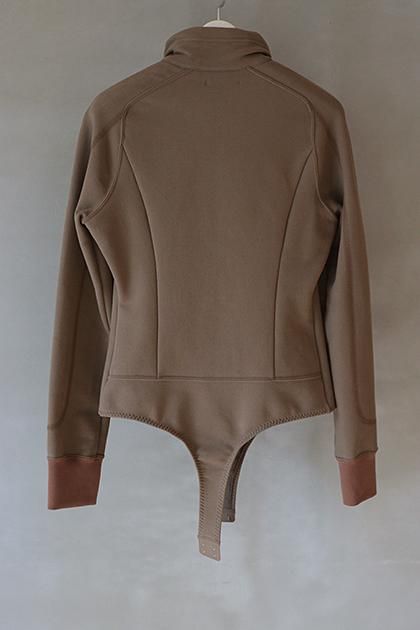 ディテールと縫製仕様を都会的な素材感でボディースーツに再構築したデザイン。