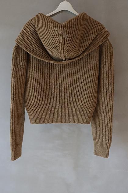 SHETLAND RIB STITCH HOODED CARDIGAN