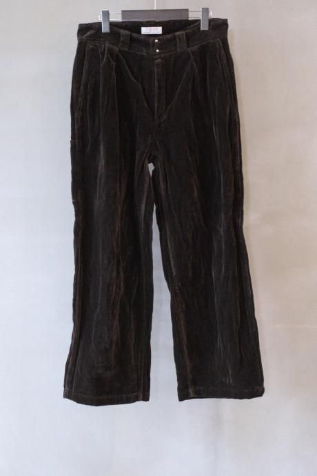 - コットンベルベットに極細のステンレス繊維を織り込むことで形状記憶のような役割により凹凸とシワを生み出し、独特な表情に仕上げた特殊な別注生地