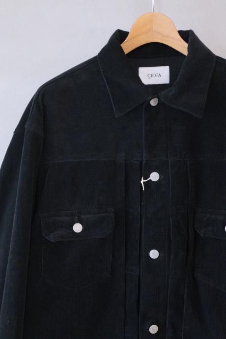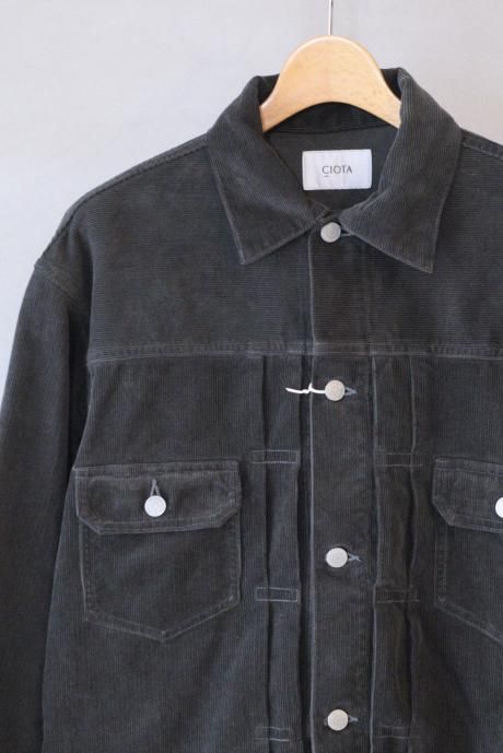 CIOTAの定番デニムジャケット、New Double Pocket Jacketをコーデュロイ素材で製作。両胸のフラップ付きポケット、フロントプリーツといったディテールは、1950年代のヴィンテージからサンプリング。着やすさを考慮し、ヴィンテージモデルよりもやや着丈を長く、アームホールを大きくしています。コーデュロイはもちろんスビンコットンで作ったオリジナル。ソフトな起毛、美しい光沢と畝、ヴィンテージのような風合いが魅力です。同素材のバギー5ポケットコーデュロイパンツとセットアップ可能。