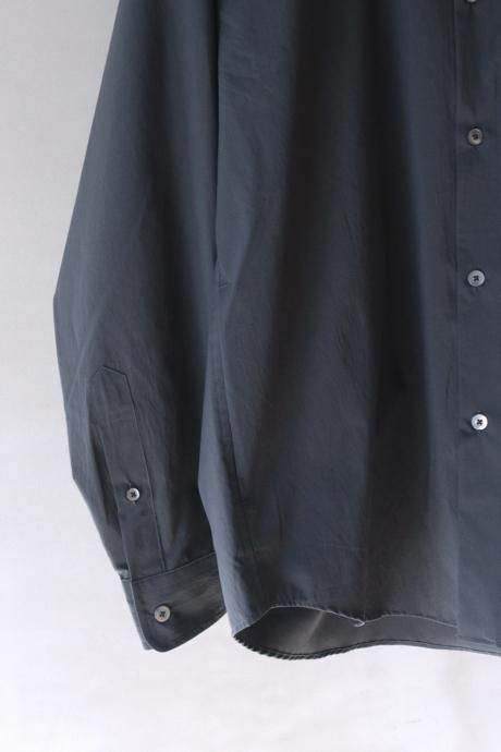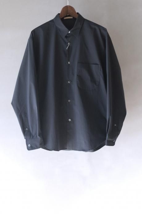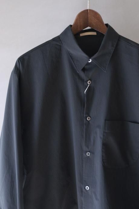 ライトアウター的なシャツ。綿のように仕上げたマットな質感に絶妙なシワ感のある生地。丈夫でシワになりにくく、イージーケア素材です。適度なゆとりあるシルエットにサイドポケットがつきます。
