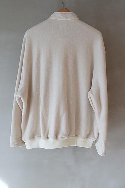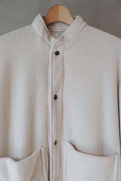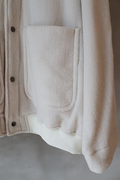 本来のフリースの原点である羊毛を使用し、ウールならではの上質な風合いと驚くほど軽い機能性を兼ね備えています。一般的な化繊のフリースとは異なり、軽さと暖かさを両立しながらもウール特有の上品な表情を持ち、高級感のある仕上がりになっています。シルエットはオーバーサイズでリラックス感がありながらも洗練された印象。冬が短くなってきた日本の気候を考慮し、裏地を省くことでより軽やかに仕上げています。寒暖差のある季節にも対応でき、長く愛用できるアイテム。
