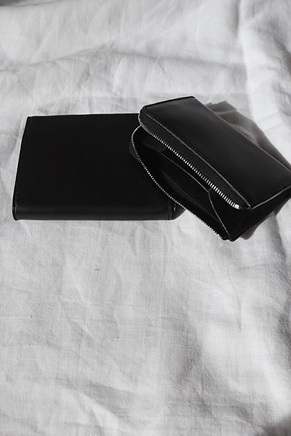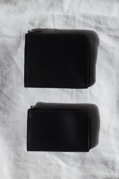 上品な艶感のある牛革を使用したL字型に開くコンパクトな財布。