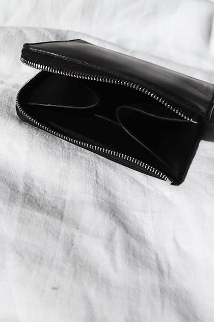 上品な艶感のある牛革を使用したL字型に開く財布。