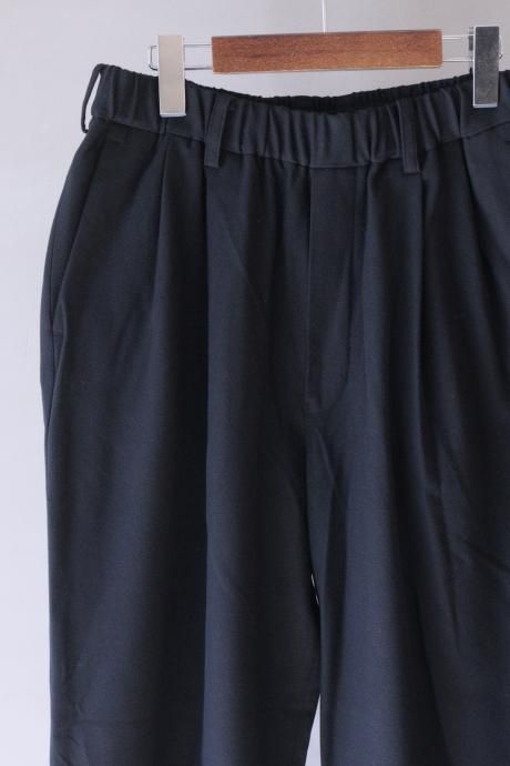 カシミヤのような肌触りをコンセプトに開発されたストレッチ素材です。丁度良いシルエットの2タックテーパードワイドパンツです。