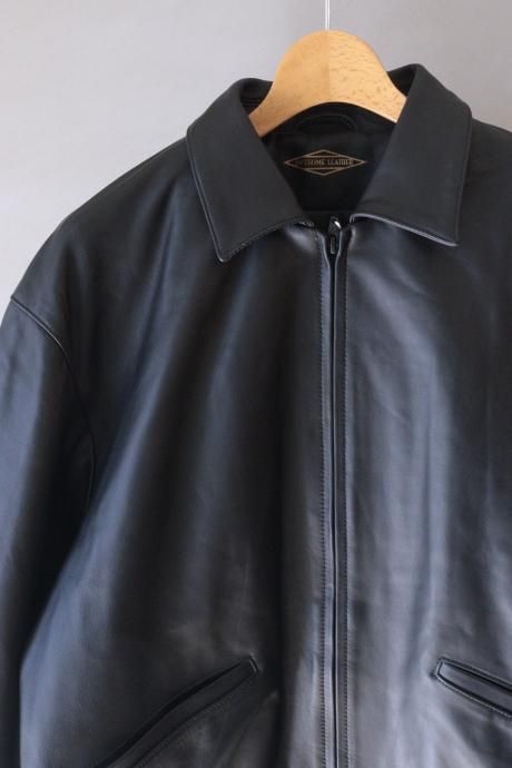 AWESOME LEATHER では定番デザインの襟付きシングルレザージャケット。